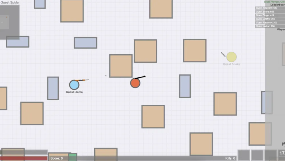 The arena in Gats.io is filled with cover blocks that you can hide behind and peek around. Moving through open space makes you an easy target, so route selection and cover transitions are as important as your raw aim. Gats.io punishes impatience and rewards deliberate, methodical movement.
