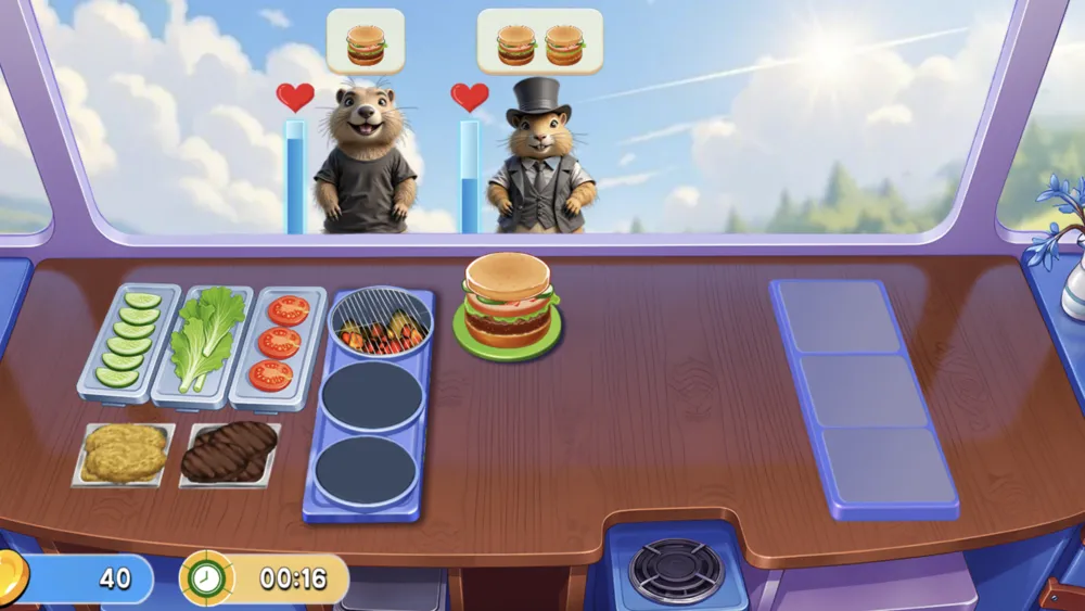 关卡之间,用积累的金币升级厨房设备、加快备餐速度、拓展菜单品类。随着 Marmot Diner Dash 深入,土拨鼠顾客的口味会不断进化,期望值也越来越高,因此提前规划升级路线至关重要。速度、品质与资源投入之间的平衡,是 Marmot Diner Dash 的核心挑战。